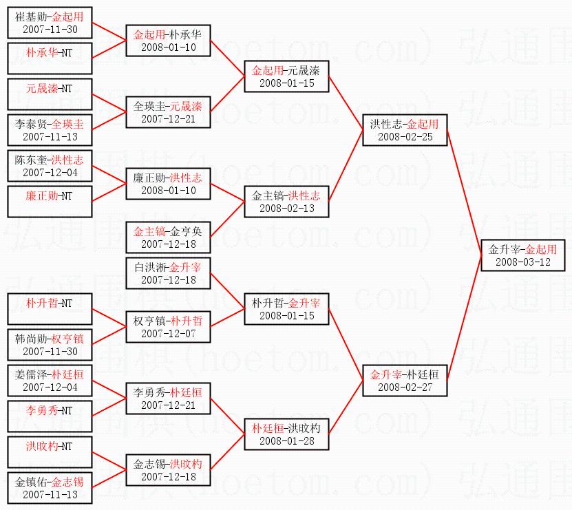 1.金起用获得冠军,金升宰获得亚军。决赛比分:金起用2:0金升宰。棋局: