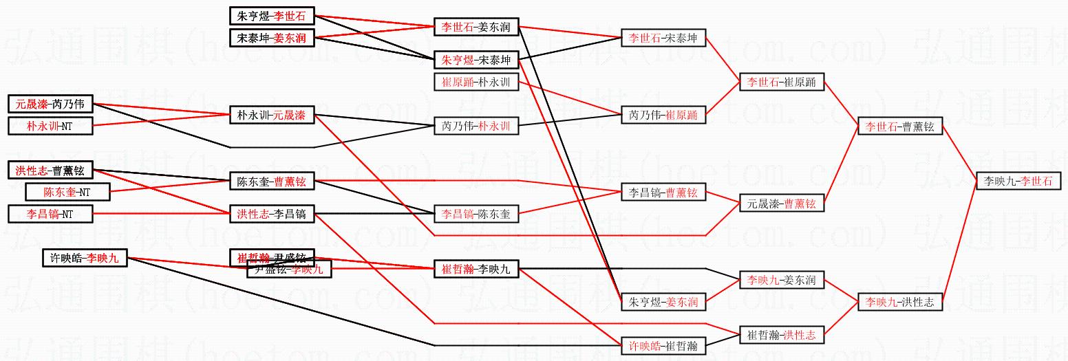 1.李世石获得冠军,李映九获得亚军。决赛比分:李世石2:1李映九。棋局: