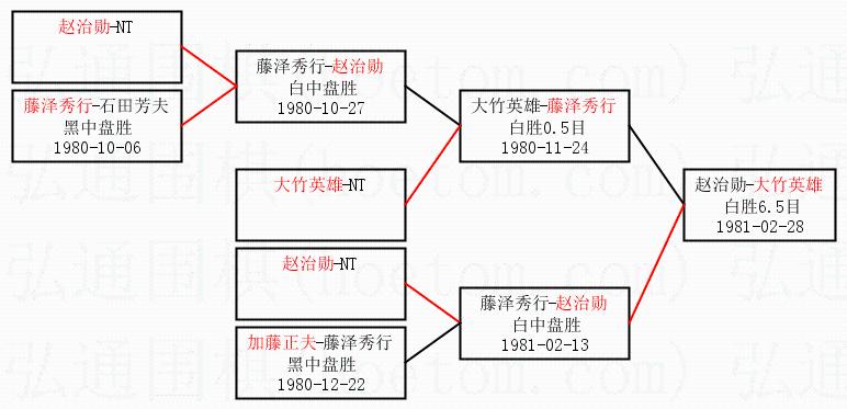 3.下半区半决赛赵治勋获胜,比分:赵治勋1:0藤泽秀行。棋局: