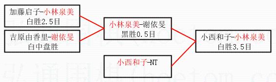 2.上半区半决赛小林泉美获胜, 比分:小林泉美 1:0 谢依旻。棋局: