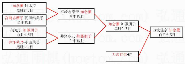 1.知念薰获得冠军,万波佳奈获得亚军。决赛比分:知念薰3:0万波佳奈。棋局: