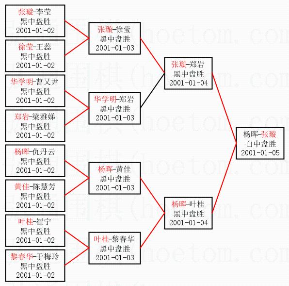 2.上半区半决赛张璇获胜, 比分:张璇 1:0 郑岩。棋局: