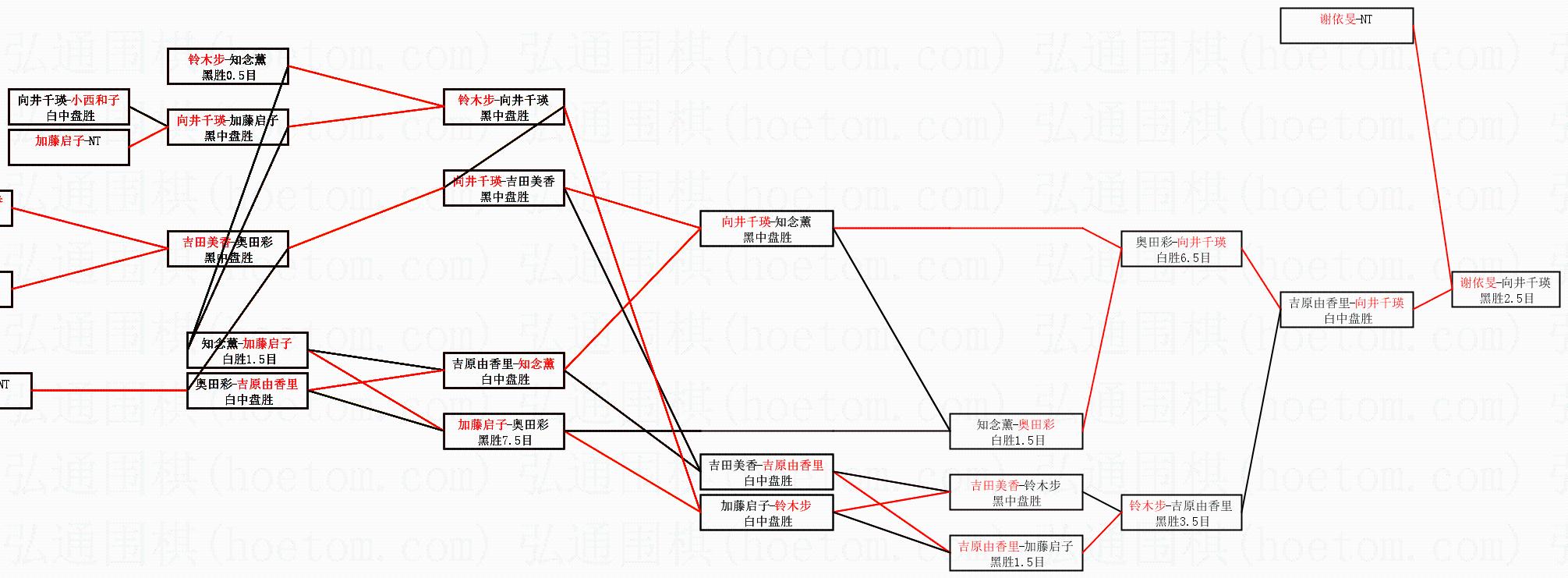 1.谢依旻获得冠军,向井千瑛获得亚军。决赛比分:谢依旻2:0向井千瑛。棋局: