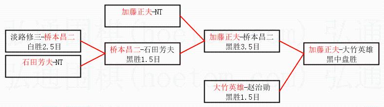 3.下半区半决赛大竹英雄获胜,比分:大竹英雄1:0赵治勋。棋局: