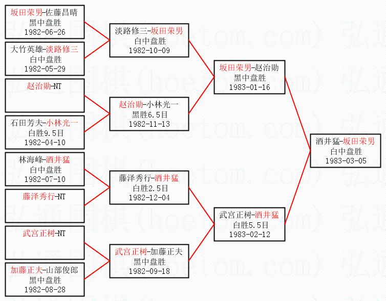 1.坂田荣男获得冠军,酒井猛获得亚军。决赛比分:坂田荣男1:0酒井猛。棋局: