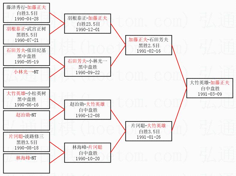 1.加藤正夫获得冠军,大竹英雄获得亚军。决赛比分:加藤正夫1:0大竹英雄。棋局: