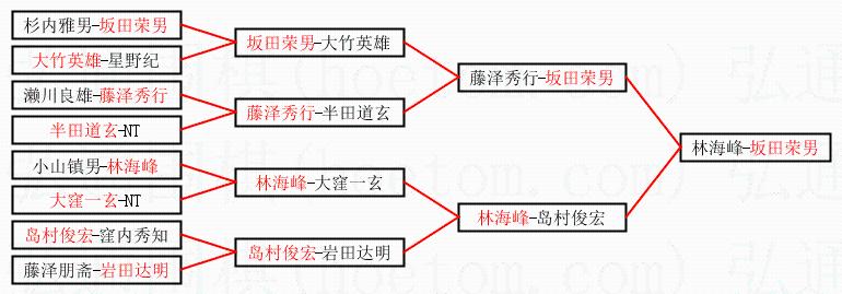 | 1.坂田荣男获得冠军,林海峰获得亚军。决赛比分:坂田荣男2:1林海峰。棋局: | ||