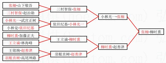 1.张栩获得冠军,柳时熏获得亚军。决赛比分:张栩1:0柳时熏。棋局: