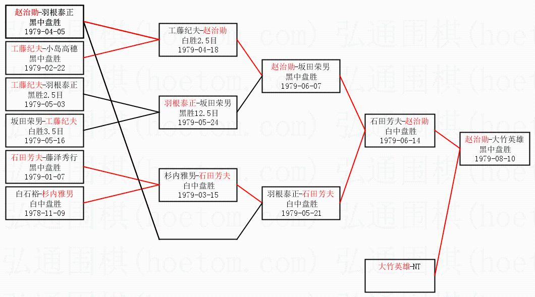 2.上半区半决赛赵治勋获胜, 比分:赵治勋 1:0 石田芳夫。棋局: