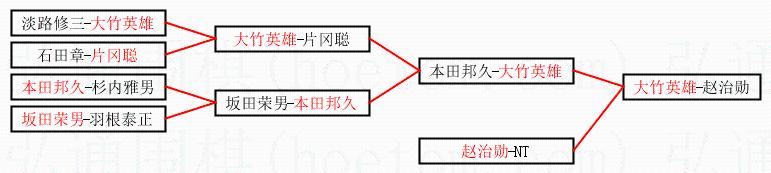 1.大竹英雄获得冠军,赵治勋获得亚军。决赛比分:大竹英雄3:1赵治勋。棋局: