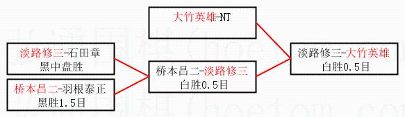 | 1.大竹英雄获得冠军,淡路修三获得亚军。决赛比分:大竹英雄3:2淡路修三。棋局: | ||