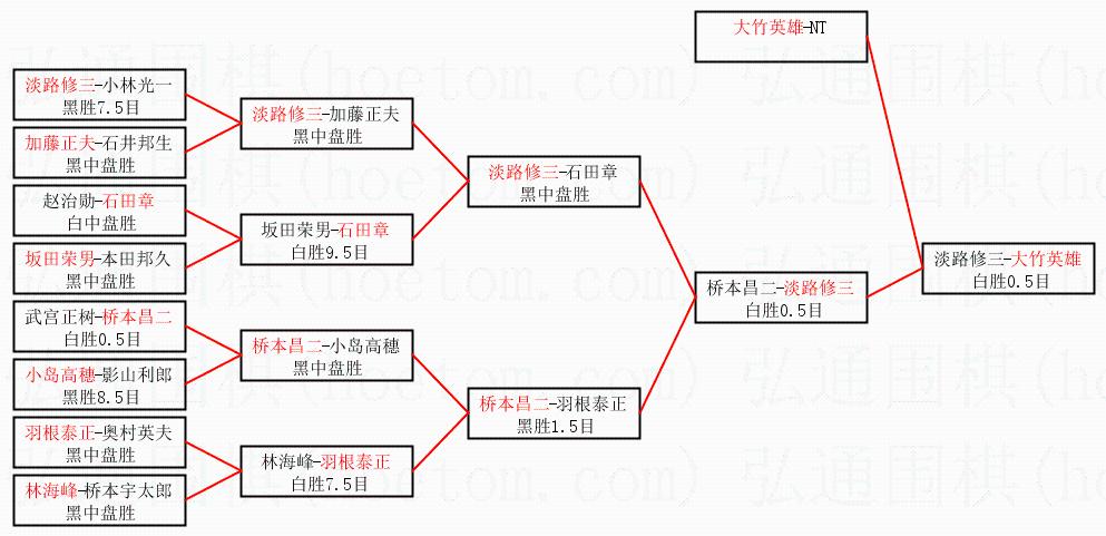 1.大竹英雄获得冠军,淡路修三获得亚军。决赛比分:大竹英雄3:2淡路修三。棋局: