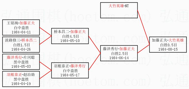 | 1.大竹英雄获得冠军,加藤正夫获得亚军。决赛比分:大竹英雄3:1加藤正夫。棋局: | ||