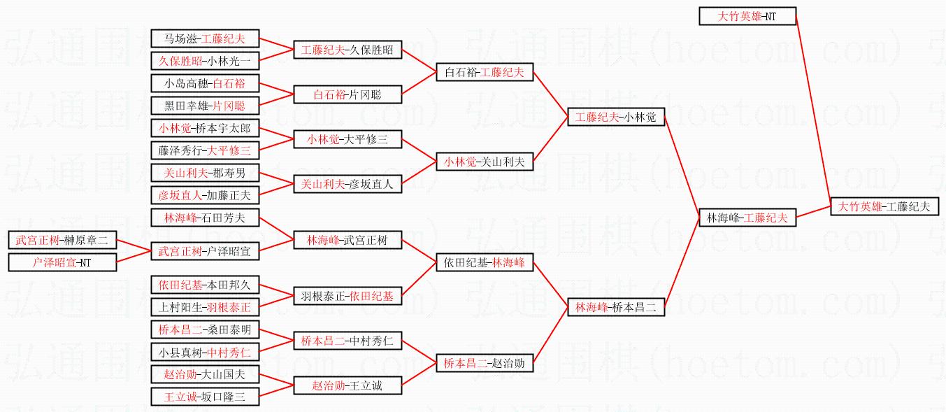 | 1.大竹英雄获得冠军,工藤纪夫获得亚军。决赛比分:大竹英雄3:1工藤纪夫。棋局: | ||