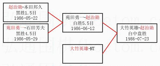 2.上半区半决赛赵治勋获胜, 比分:赵治勋 1:0 苑田勇一。棋局:
