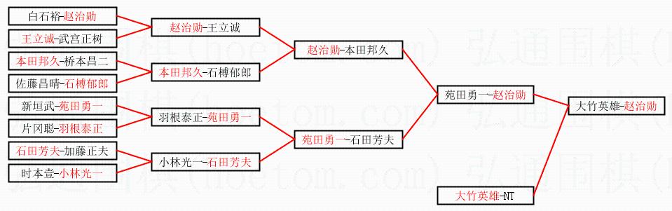 2.上半区半决赛赵治勋获胜, 比分:赵治勋 1:0 苑田勇一。棋局:
