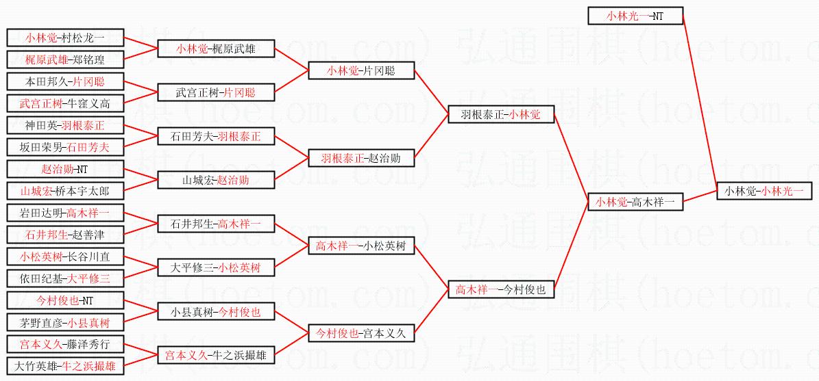 1.小林光一获得冠军,小林觉获得亚军。决赛比分:小林光一3:0小林觉。棋局: