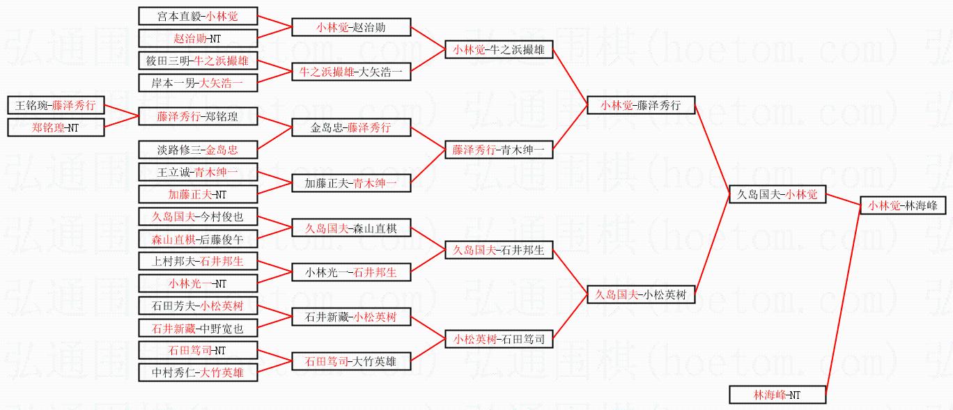 1.小林觉获得冠军,林海峰获得亚军。决赛比分:小林觉3:2林海峰。棋局: