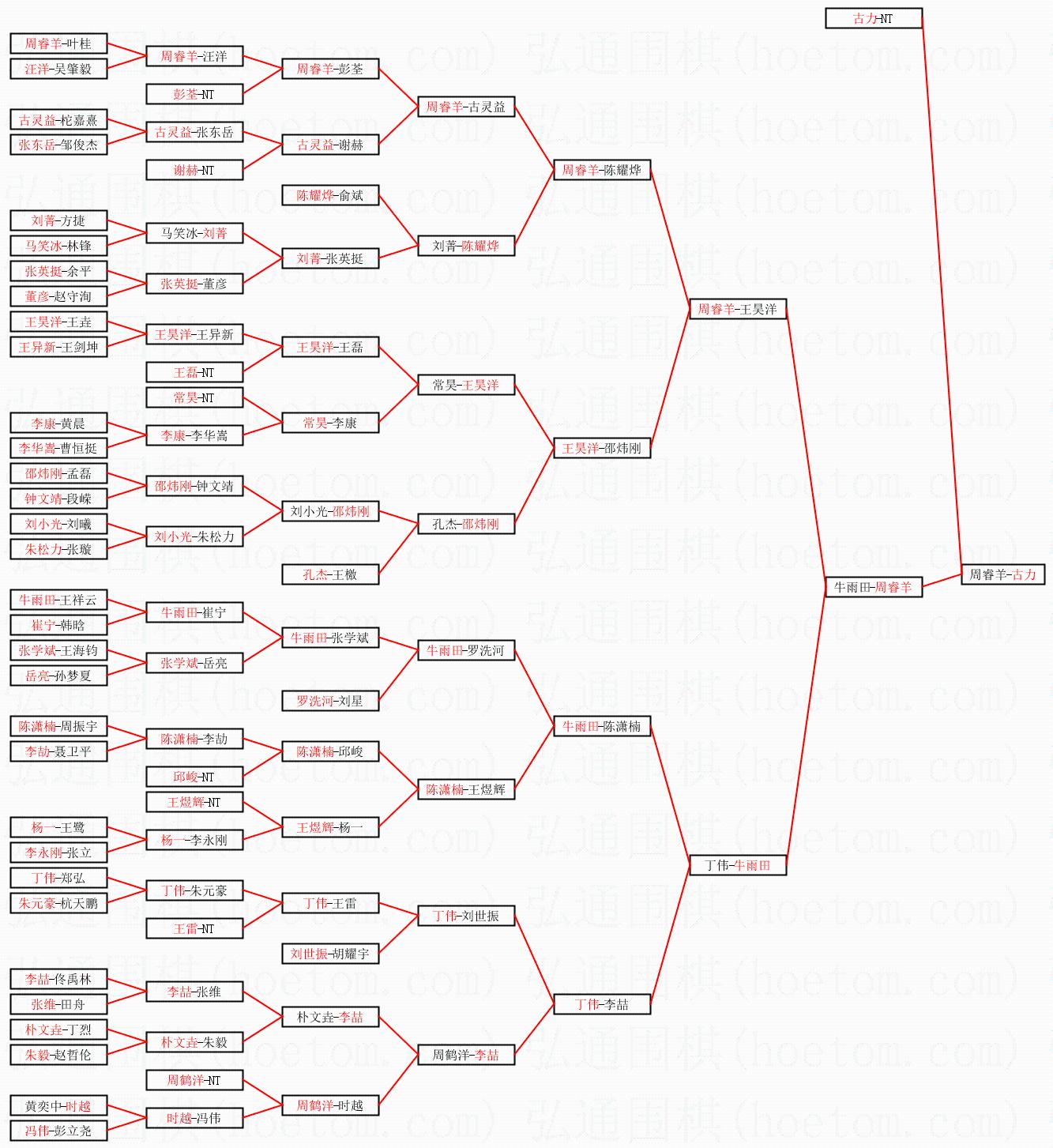 | 1.古力获得冠军,周睿羊获得亚军。决赛比分:古力3:0周睿羊。棋局: | ||