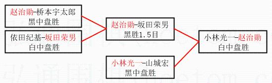 2.上半区半决赛赵治勋获胜, 比分:赵治勋 1:0 坂田荣男。棋局:
