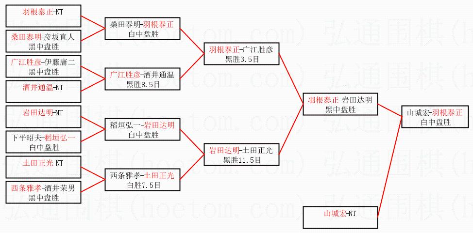 1.羽根泰正获得冠军,山城宏获得亚军。决赛比分:羽根泰正1:0山城宏。棋局: