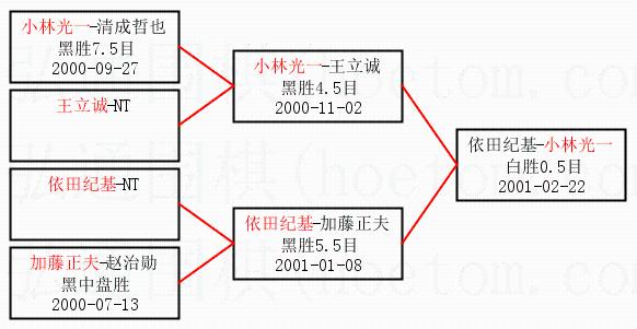 2.上半区半决赛小林光一获胜, 比分:小林光一 1:0 王立诚。棋局: