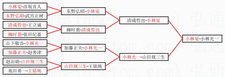 2.上半区半决赛小林觉获胜, 比分:小林觉 1:0 清成哲也。棋局: