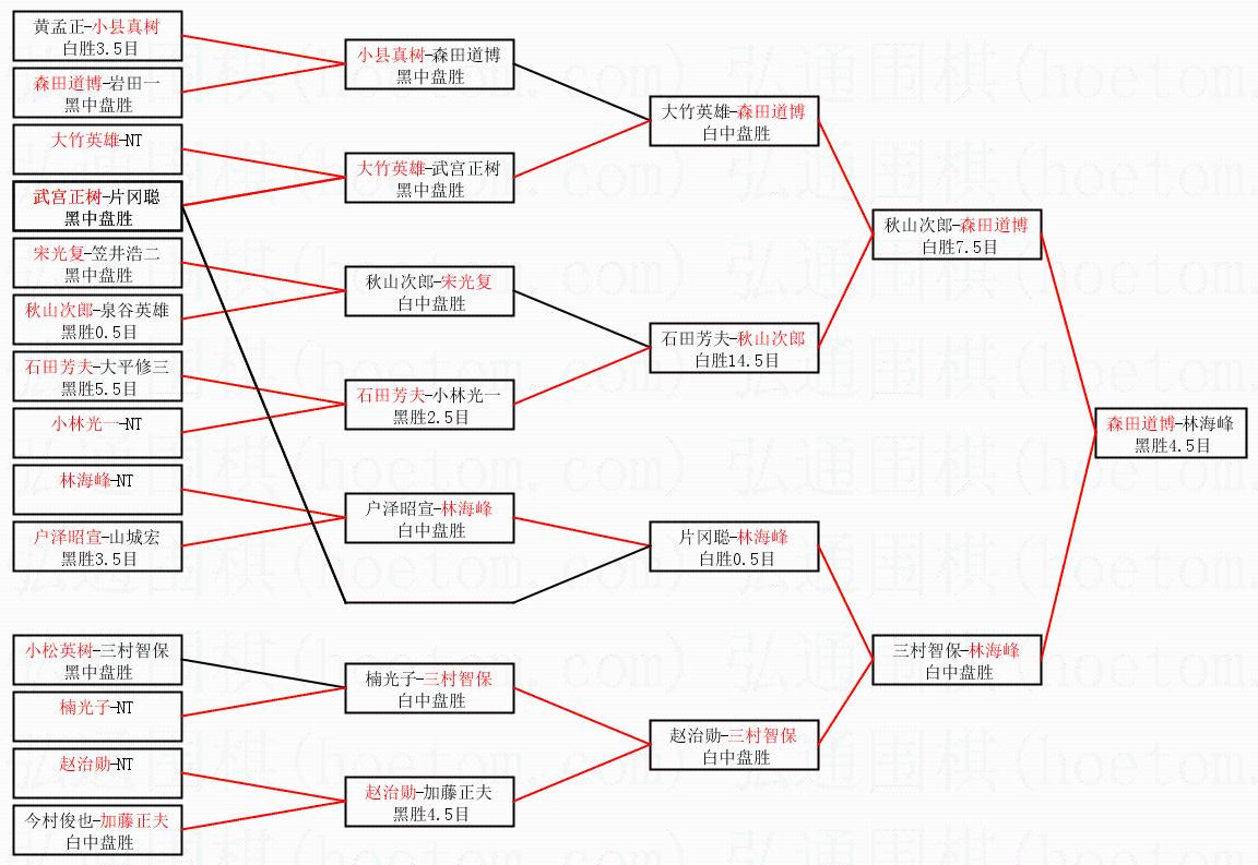 1.森田道博获得冠军,林海峰获得亚军。决赛比分:森田道博1:0林海峰。棋局: