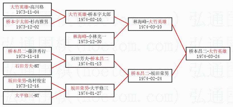 3.下半区半决赛桥本昌二获胜,比分:桥本昌二1:0坂田荣男。棋局: