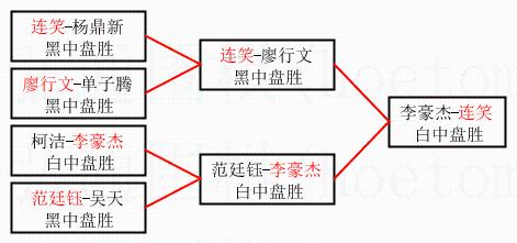 2.上半区半决赛连笑获胜, 比分:连笑 1:0 廖行文。棋局: