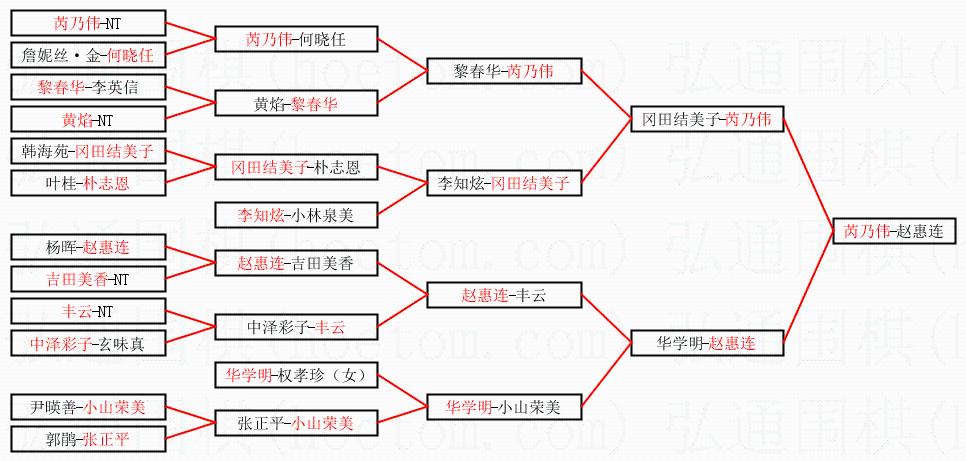 | 2.上半区半决赛芮乃伟获胜, 比分:芮乃伟 1:0 冈田结美子。棋局: | ||