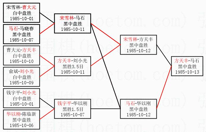 1.方天丰获得冠军,马石获得亚军。决赛比分:方天丰1:0马石。棋局: