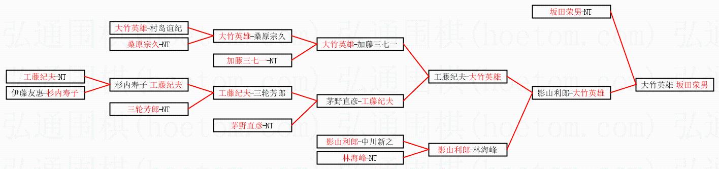 1.坂田荣男获得冠军,大竹英雄获得亚军。决赛比分:坂田荣男1:0大竹英雄。棋局: