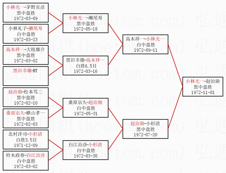 3.下半区半决赛赵治勋获胜,比分:赵治勋1:0小杉清。棋局: