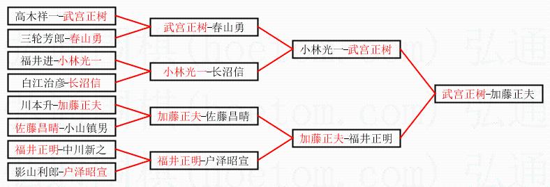 1.武宫正树获得冠军,加藤正夫获得亚军。决赛比分:武宫正树1:0加藤正夫。棋局: