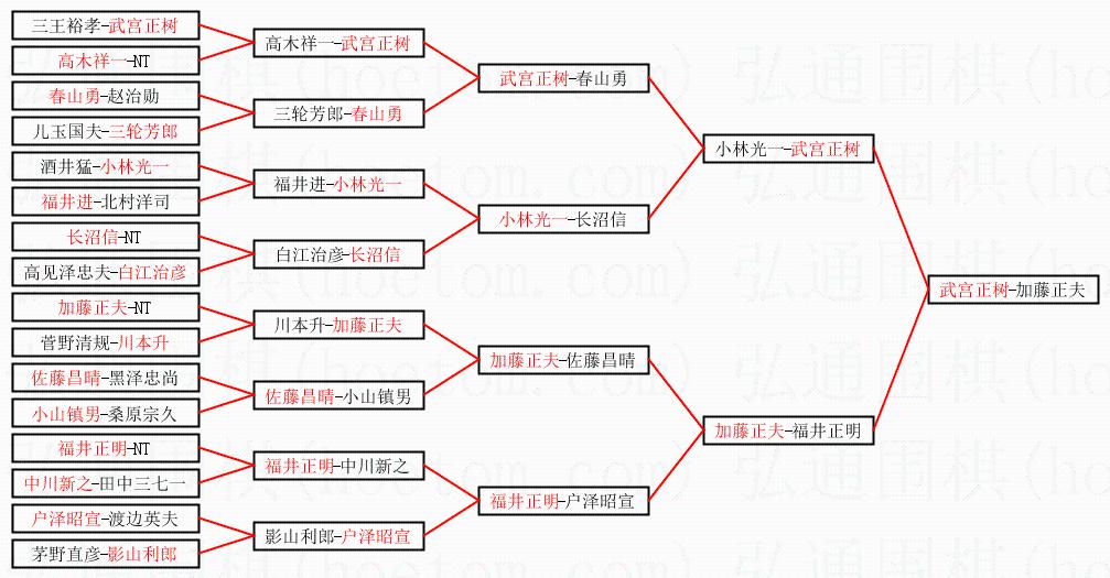 1.武宫正树获得冠军,加藤正夫获得亚军。决赛比分:武宫正树1:0加藤正夫。棋局: