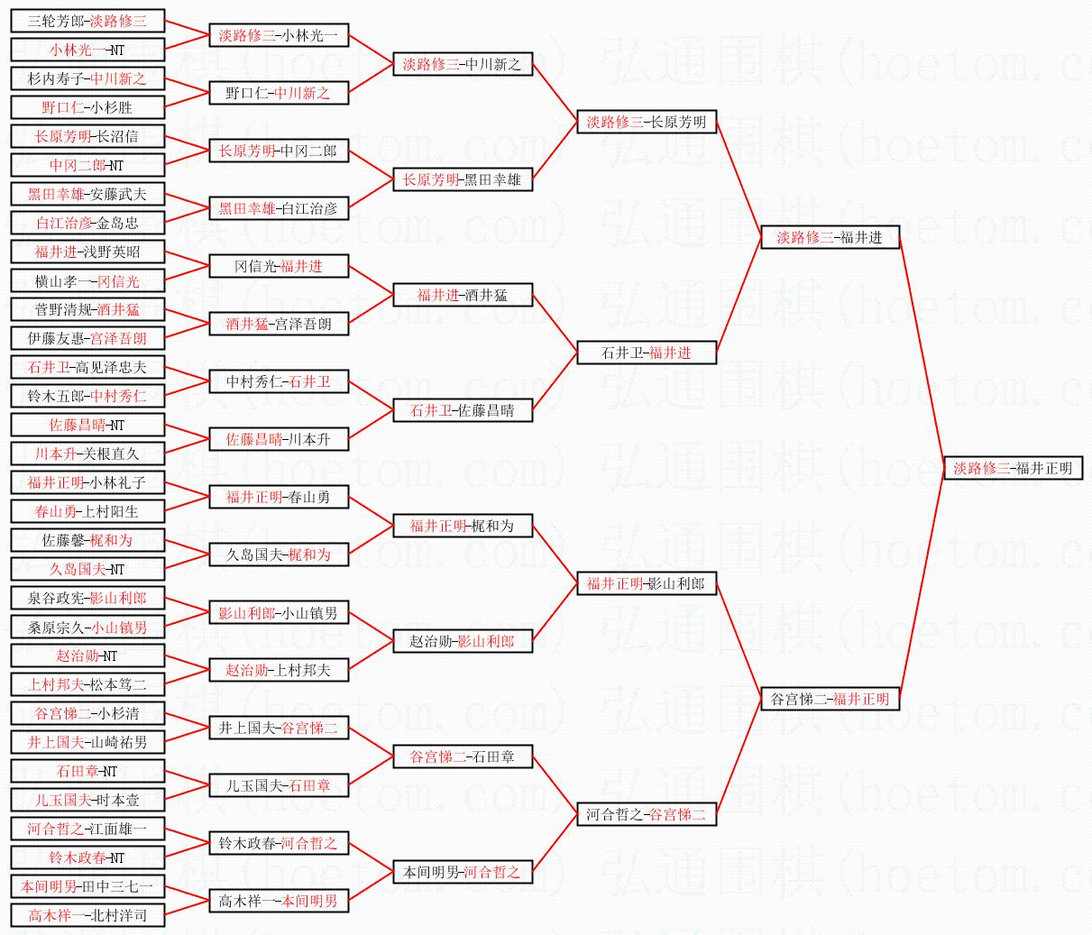 1.淡路修三获得冠军,福井正明获得亚军。决赛比分:淡路修三2:1福井正明。棋局: