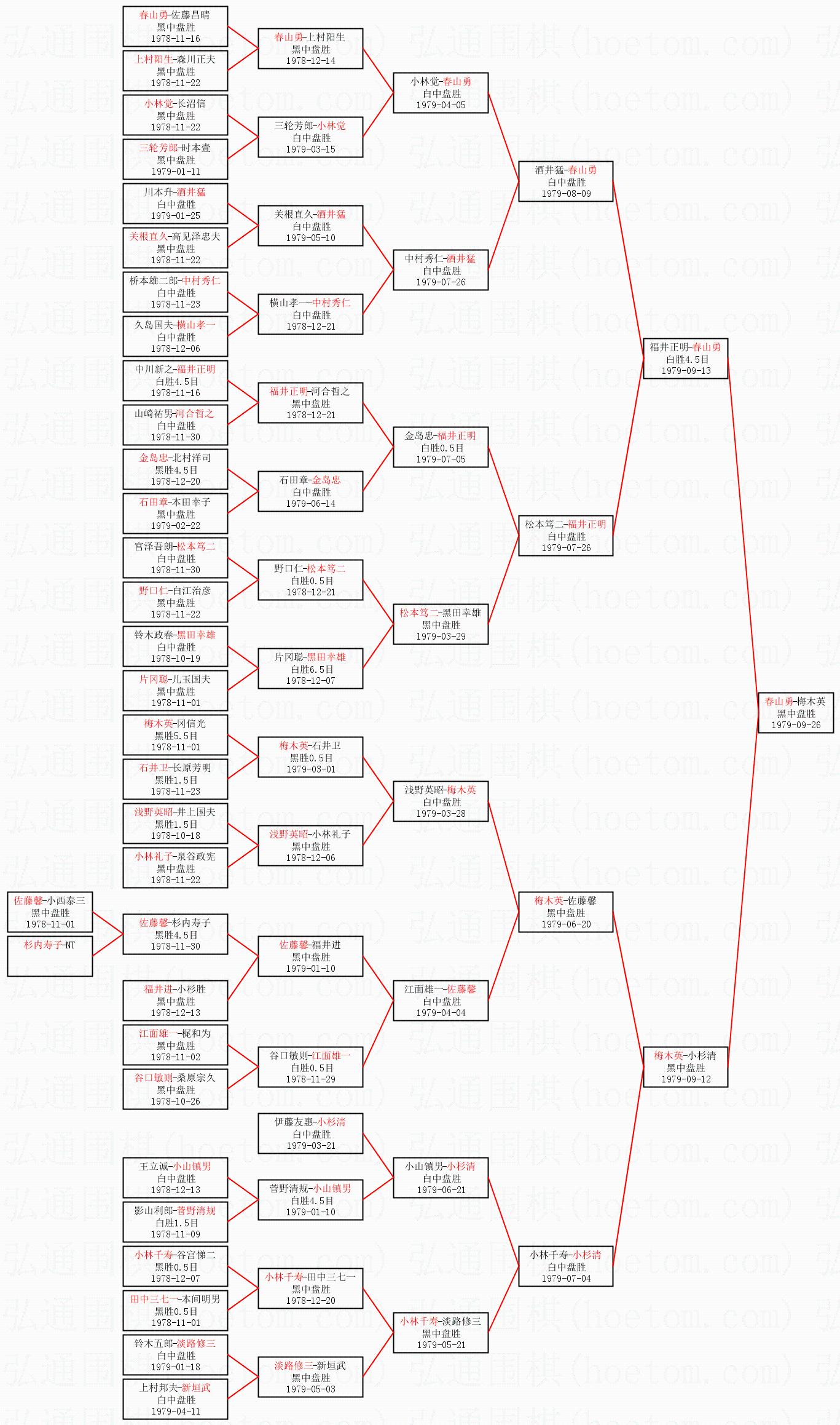 1.春山勇获得冠军,梅木英获得亚军。决赛比分:春山勇2:0梅木英。棋局: