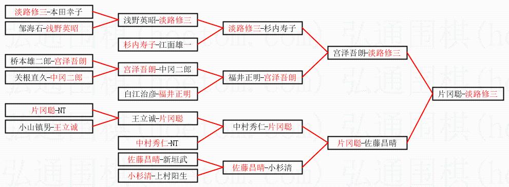 1.淡路修三获得冠军,片冈聪获得亚军。决赛比分:淡路修三2:0片冈聪。棋局: