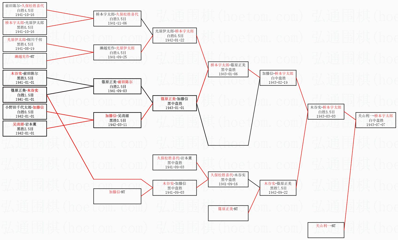 2.上半区半决赛桥本宇太郎获胜, 比分:桥本宇太郎 1:0 木谷实。棋局: