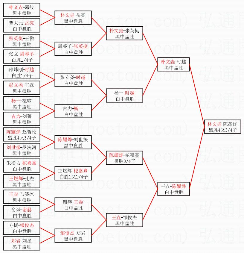 1.朴文垚获得冠军,陈耀烨获得亚军。决赛比分:朴文垚1:0陈耀烨。棋局: