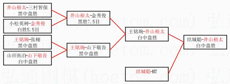 2.上半区半决赛井山裕太获胜, 比分:井山裕太 1:0 王铭琬。棋局: