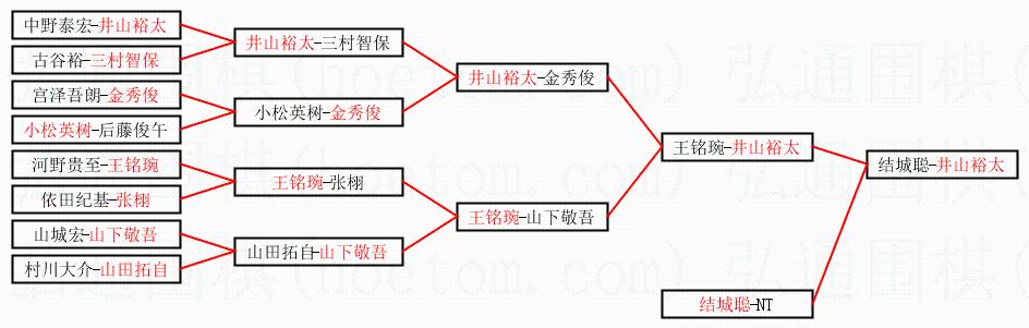 2.上半区半决赛井山裕太获胜, 比分:井山裕太 1:0 王铭琬。棋局: