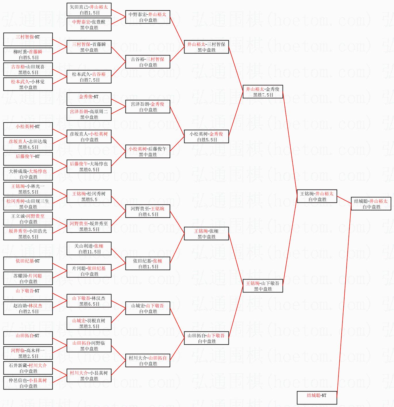 2.上半区半决赛井山裕太获胜, 比分:井山裕太 1:0 王铭琬。棋局: