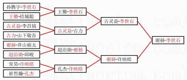 | 2.上半区半决赛李世石获胜, 比分:李世石 1:0 古灵益。棋局: | ||