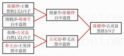 2.上半区半决赛陈耀烨获胜, 比分:陈耀烨 1:0 周睿羊。棋局: