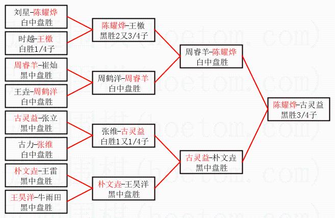 1.陈耀烨获得冠军,古灵益获得亚军。决赛比分:陈耀烨1:0古灵益。棋局: