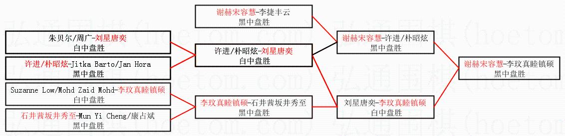 | 1.谢赫宋容慧获得冠军,李玟真睦镇硕获得亚军。决赛比分:谢赫宋容慧1:0李玟真睦镇硕。棋局: | ||