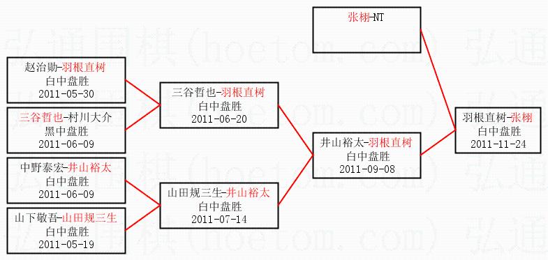 1.张栩获得冠军,羽根直树获得亚军。决赛比分:张栩3:0羽根直树。棋局: