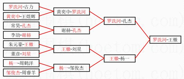 1.罗洗河获得冠军,王檄获得亚军。决赛比分:罗洗河1:0王檄。棋局:
